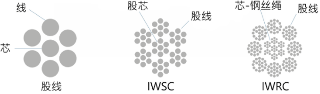 1.IWSC(獨(dú)立鋼絲股芯): 股芯由與鋼絲繩外股相同材料的股線構(gòu)成。這些股線以3×7、7×7和7×19等配置組合在一起。這種結(jié)構(gòu)可作為通用的機(jī)械元件而使用,具有良好的軸向剛度和彎曲彈性。