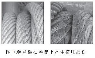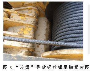 8、對于多層纏繞的設備,鋼絲繩在使用中發(fā)生“咬繩”是不可避免的。建議在使用中對“咬繩”部位經(jīng)常檢查,并加強潤滑,或者定期“竄繩”切斷,錯開“咬繩”部位。