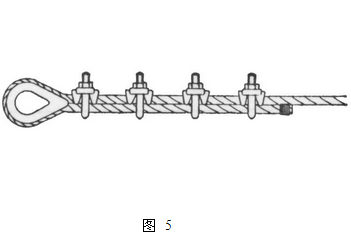 3、必須安裝繩卡時,應按照圖5的方法固定。繩卡間距為5-6倍鋼絲繩直徑。