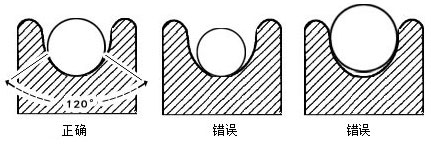 如圖所示:分別標(biāo)示了窄繩槽、寬繩槽與鋼絲繩的正確和錯誤搭配