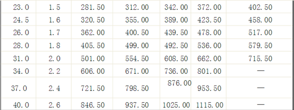 一般起重作業(yè)可采用GB/T8918-1996《鋼絲繩》中6×19和6×37鋼絲繩,其規(guī)格參數(shù)見(jiàn)下表: