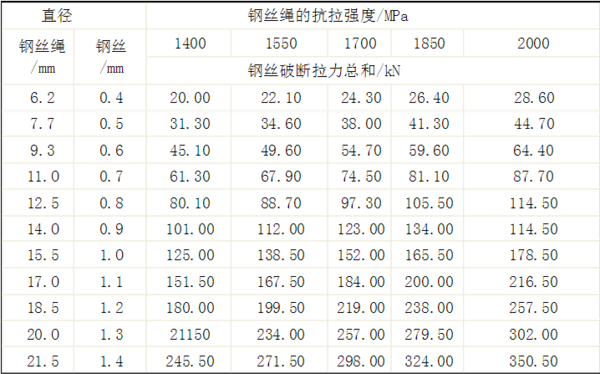 鋼絲繩的規(guī)格參數(shù)