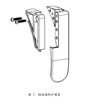 5)鋼絲繩保護裝置該部件可以避免鋼絲繩與滑輪罩的碰擦,防止鋼絲繩因此產(chǎn)生的磨損,延長鋼絲繩壽命。本件為分體式設計,安裝方便,特別是在更換時,無須拆卸鋼絲繩。該裝置安裝在滑輪罩槽孔中并可以沿槽孔靈活滑動,自動跟隨鋼絲繩在起升及下降過程中出繩角度的變化。采用PA6GF30材料,制造方便,具有良好的耐磨性能及強度,外形美觀。
