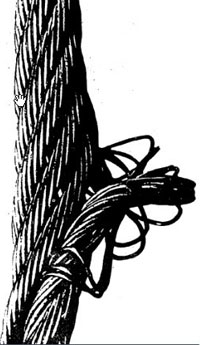 多股繩的籠狀(鳥籠行)畸變—塔吊工理應(yīng)立即報廢這種鋼絲繩。