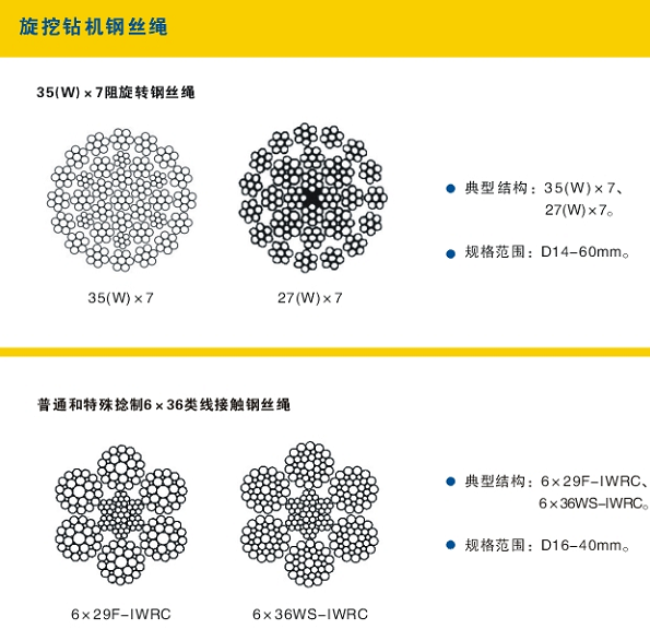 按用途分:主要有旋挖鉆機鋼絲繩,履帶式起重機鋼絲繩,汽車起重機鋼絲繩,塔式起重機鋼絲繩,沖擊鉆機鋼絲繩