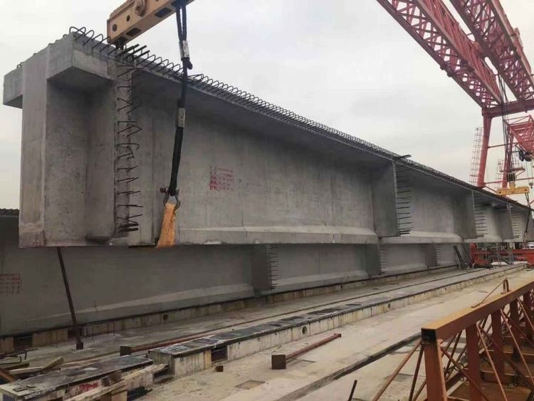 此掛繩方法2:將吊梁鋼絲繩左右環(huán)加都上小鋼絲繩,吊梁到位時將左邊鋼絲繩松下,用小鋼絲繩從梁底部抽出使用副鉤起升抬吊吊裝鋼絲繩,主鉤保此不動作,鋼絲繩離地后抬著走,使用也是很輕松的,加上副鉤起升數(shù)度快每分7米就效率更高了。